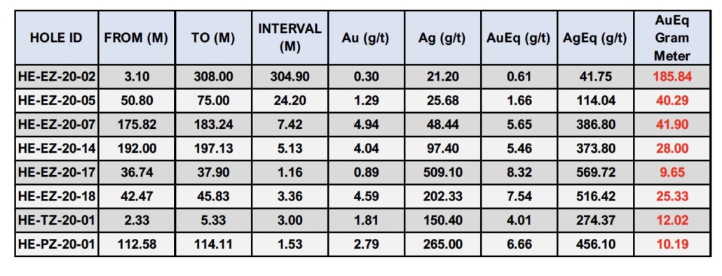 Table 1. Highlighted 2020 Heritage Project Drilling Intersections4
