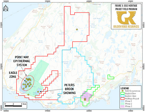 Golden Ridge is also pleased to announce the completion of the first large-scale geochemical program on its district-scale Heritage Property, located within the Burin Epithermal Gold/Silver Belt.